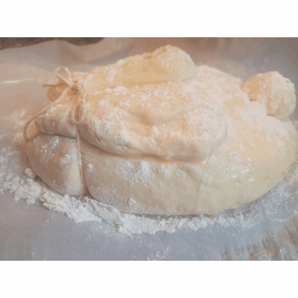 I shape the remaining dough into a round shape and place it on a parchment-lined baking sheet.