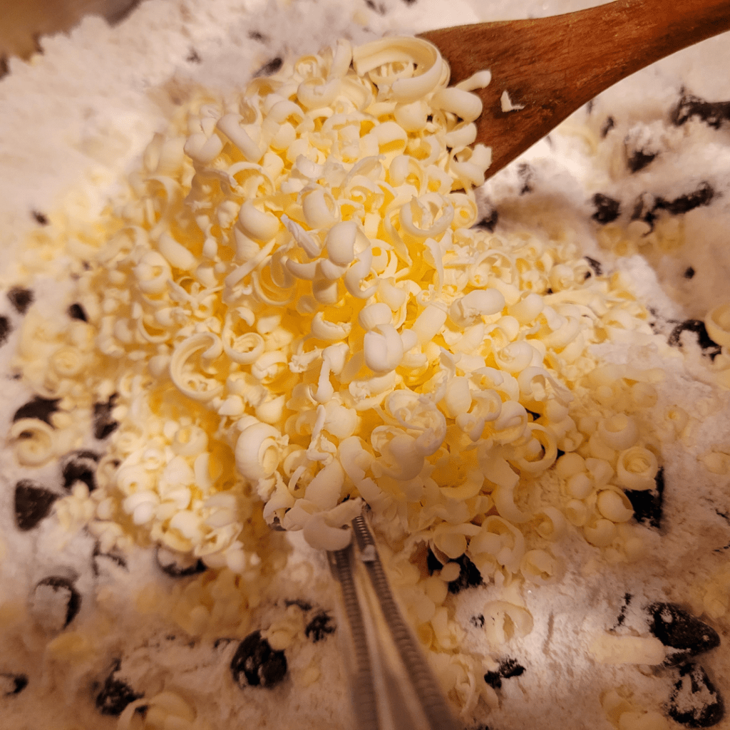 They are the ultimate baking hack that keeps on giving! I am all about reducing food waste, and when I started dabbling in sourdough bread-making, I discovered this incredible way to use up the discard. The resulting scones are pure magic – they have this delightful tanginess from the sourdough starter that adds a whole new dimension of flavor. And don’t get me started on the texture! These scones are unbelievably tender and moist, with just the right amount of crumbly goodness. My family loves experimenting with different add-ins like fresh berries or chunks of dark chocolate to make them even more irresistible. Plus, they’re super easy to whip up for breakfast or tea time. It’s safe to say that my family can’t get enough of these delectable treats, and they’ve become a regular staple in our kitchen! I always keep some butter in my freezer so I can be ready to whip up these scones at any time! You’ll see why this is important in a minute.